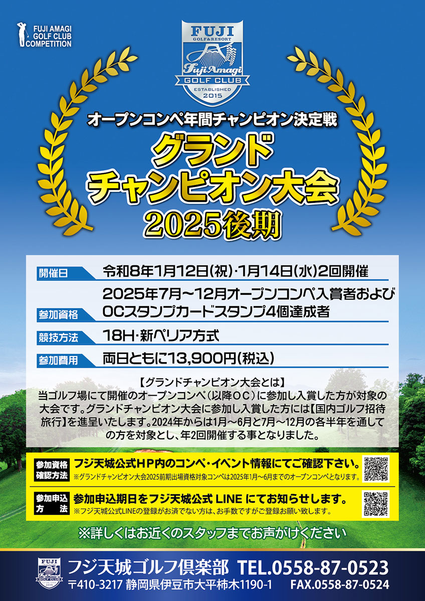【開催日】2026年1月12日(祝)・1月14日(水)の2日間 【参加費用】13,900円 【参加資格】2025年7月~12月オープンコンペ入賞者およびOCスタンプカードスタンプ4個達成者 【集計方法】新ペリア18H集計